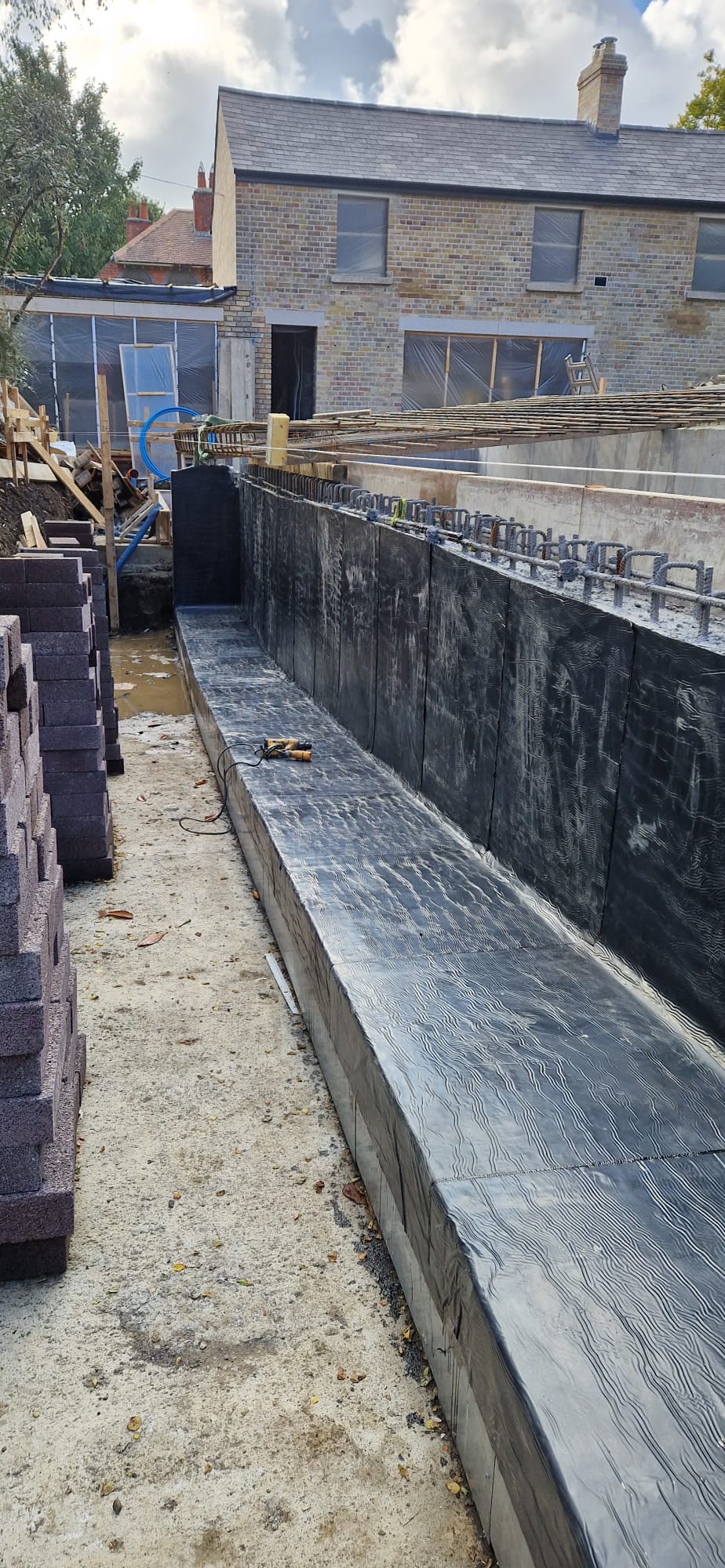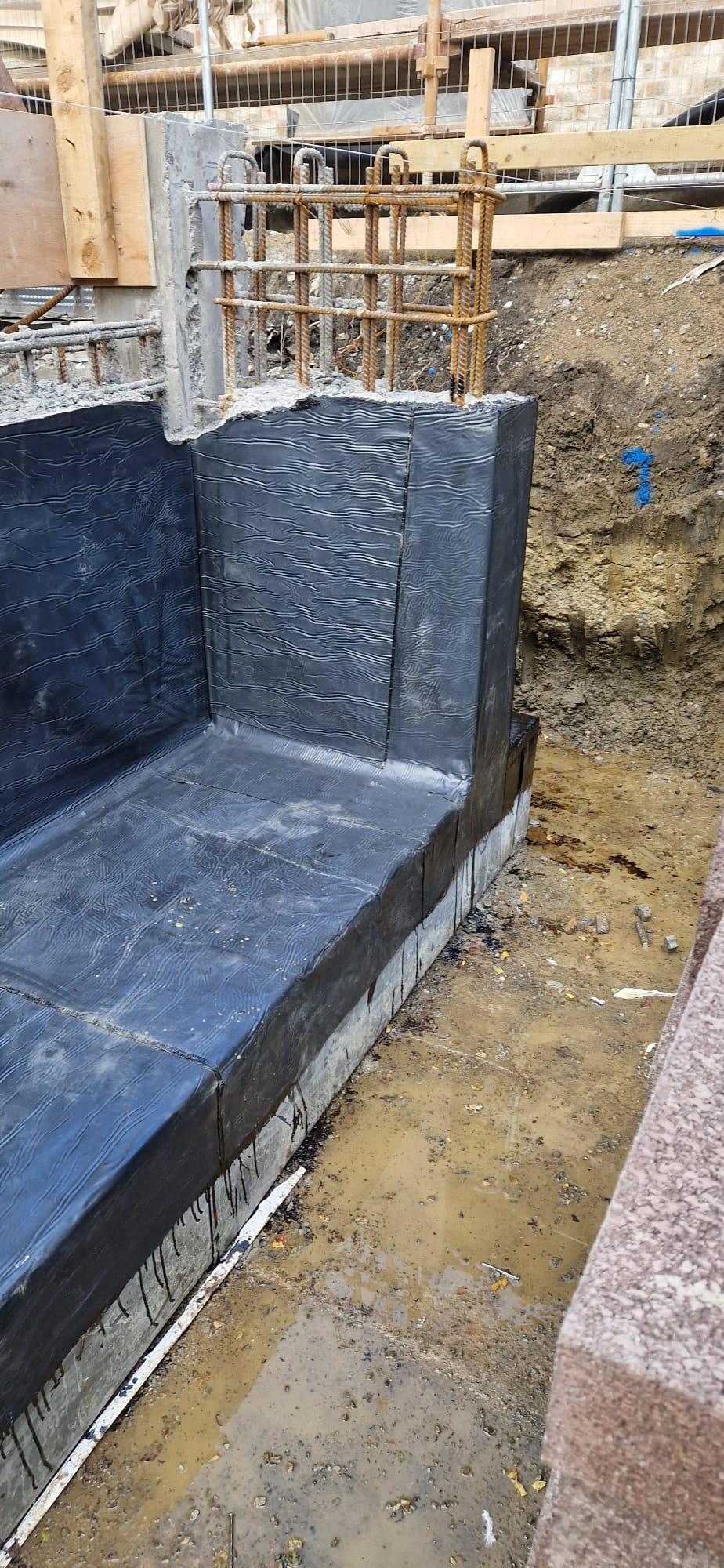 Typically applied to in-situ retaining walls, post-applied tanking membranes are highly effective in ensuring long-term waterproofing and preserving the integrity of underground structures.
